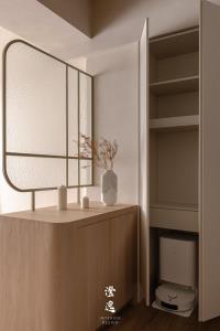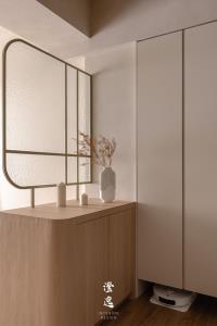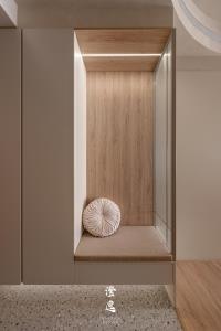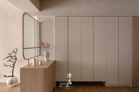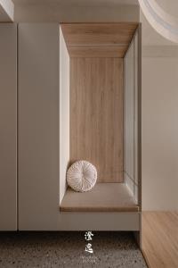 手工木作的玄關矮櫃,不僅收納實用,更帶著溫潤圓弧的木質手感,迎來日常的輕盈序曲。