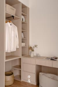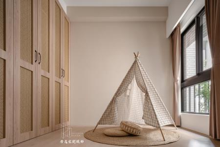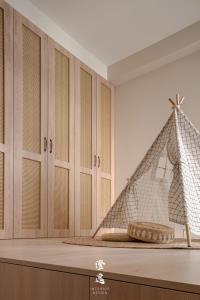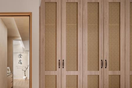 衣櫃門特別選用了客製化的藤編,編織出自然的呼吸感,讓空間更添溫潤與輕盈。