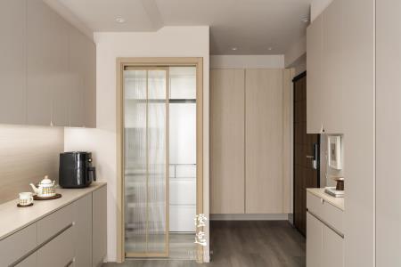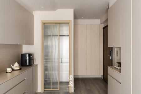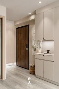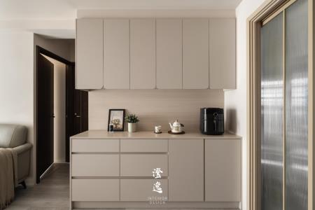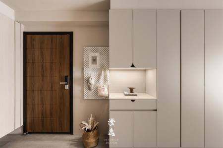 玄關落下的第一道視線,如同春晨的微光輕輕掠過,奶茶色櫃體與溫潤木質在此交會,靜靜描繪家的開場。