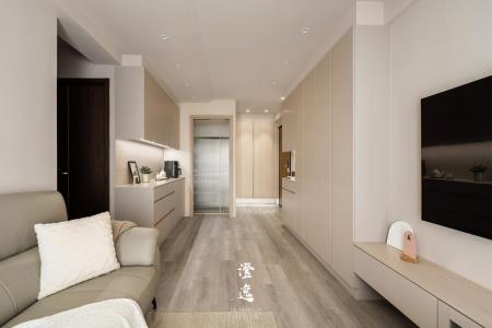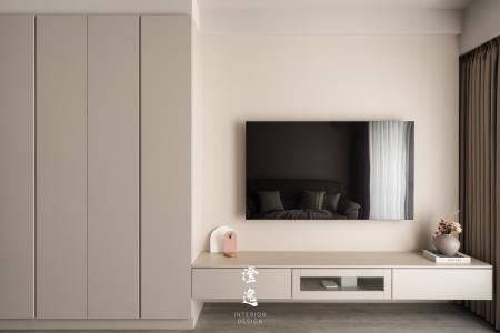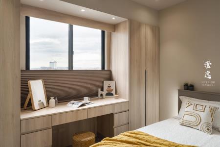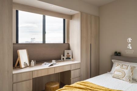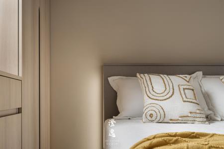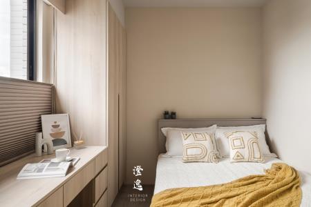 主臥鋪陳以淡雅色系為底,霧灰色床板低調安穩,靜靜承接每一刻疲憊,也守護片刻寧靜,勾勒出恬淡舒心的休憩場域。